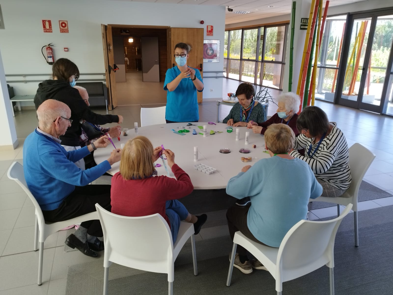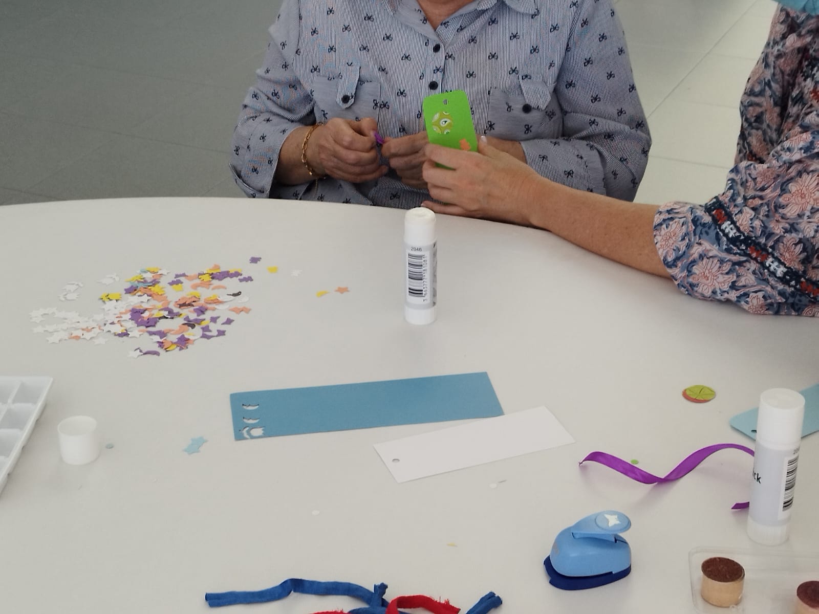 Posteriormente, el martes 25 en horario de tarde se celebraron dos sesiones del taller de elaboración de marcapáginas. En la primera sesión, las usuarias y usuarios del Centro de Estancias Diurnas pudieron crear unos bonitos y originales marcapáginas guiados por nuestra animadora sociocultural Ruth mientras que, en la segunda sesión, fueron las personas usuarias residentes junto a sus familiares quienes disfrutaron realizando esta actividad guiada. Al día siguiente, el miércoles 26 de abril, se publicó en el blog del CREA una infografía sobre los tipos de libros que se pueden localizar en la biblioteca física del CRE Alzheimer.